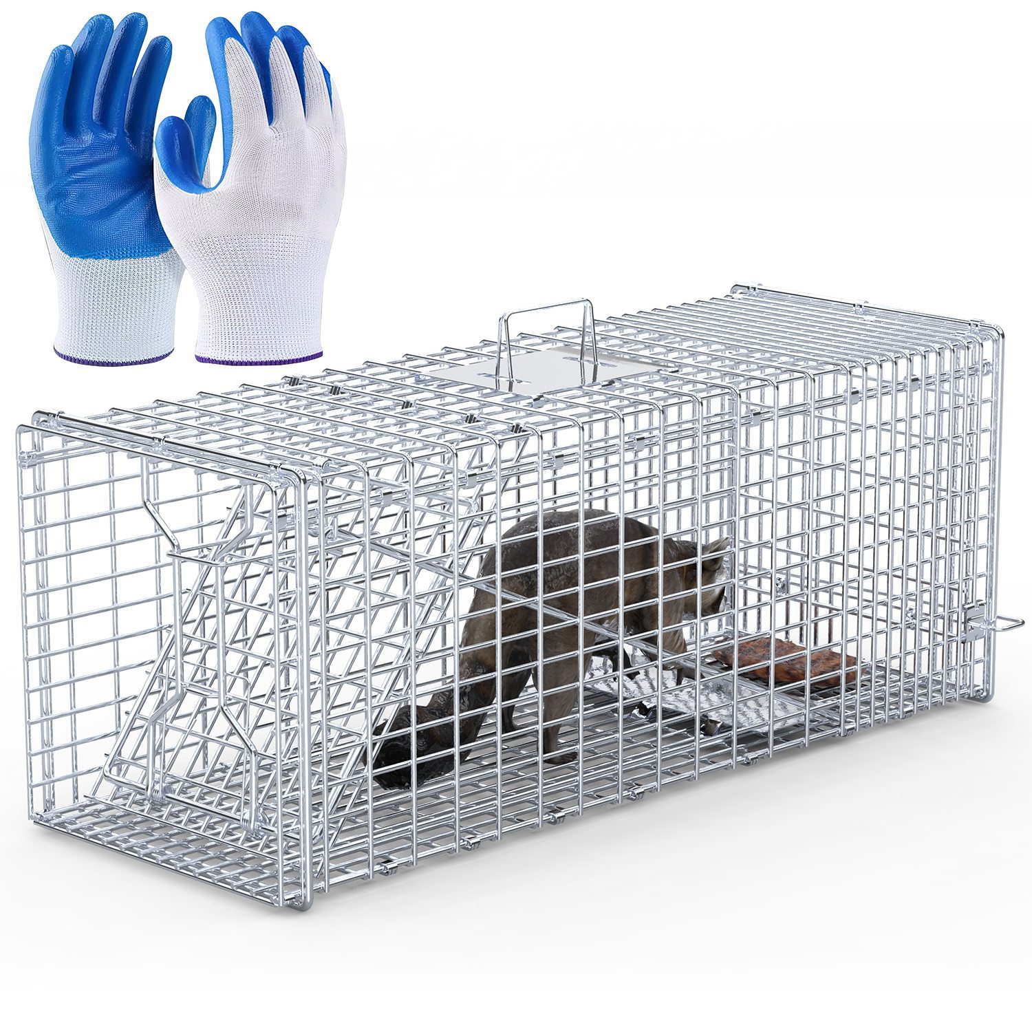 - *Solid Construction*: Made with heavy-duty galvanized wire mesh,this trap is built to last in all weather conditions,offering exceptional stability and durability. The smooth,rounded edges help prevent injuries to both animals and handlers,while the trigger rod is positioned outside the cage to prevent damage from trapped animals.