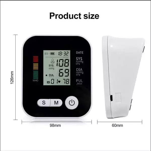 Able to read systolic pressure, diastolic pressure and pulse rate, monitor of irregular heartbeat and blood pressure classification simultaneously.