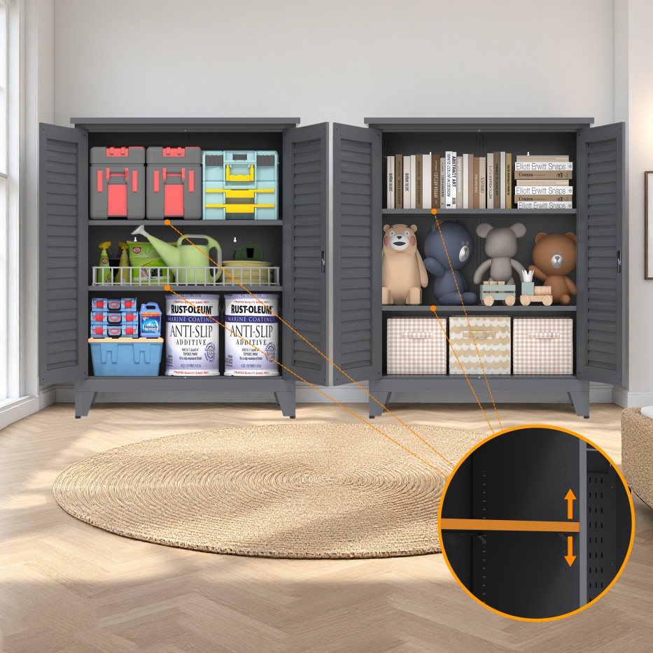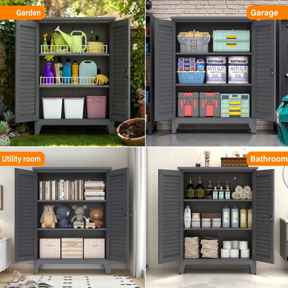 • 【Multi-scenario Applications】Boasting multi-scenario application, this tool cabinet fits perfectly in garages, workshops, warehouses, home basements, gardens, outdoor spaces and bathrooms. Ideal for tools, gardening gear, outdoor essentials and bathroom supplies, it meets diverse storage needs, bringing convenience and keeping spaces tidy wherever organized storage is required.