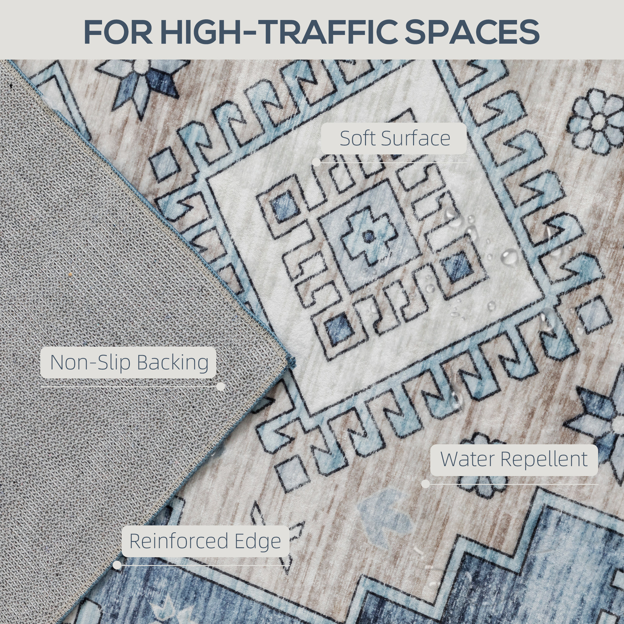 - – Anti-slip backing ensures safety and stability on slick floors