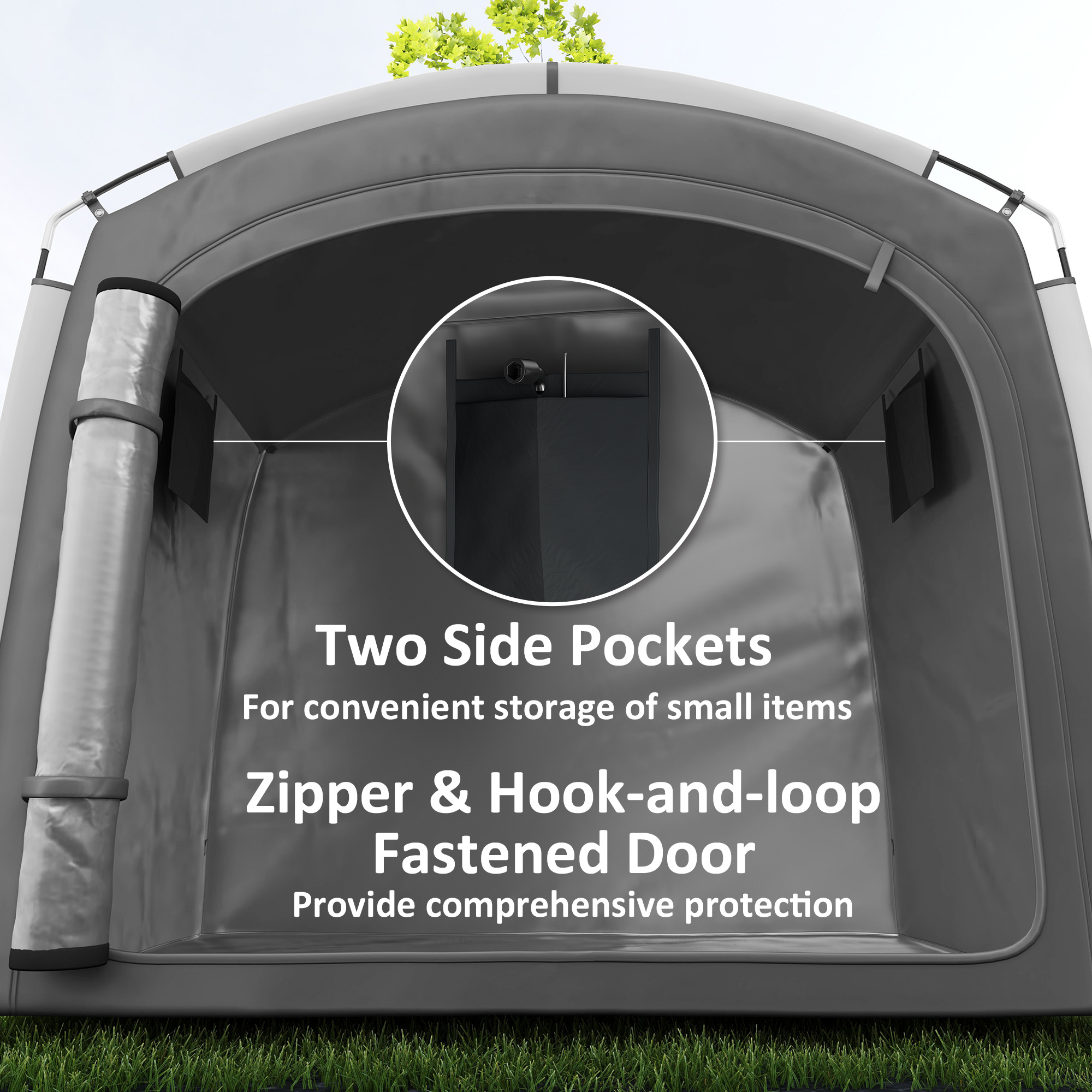 - – Spacious bike shelter fits 3-4 bikes or 2 motorcycles