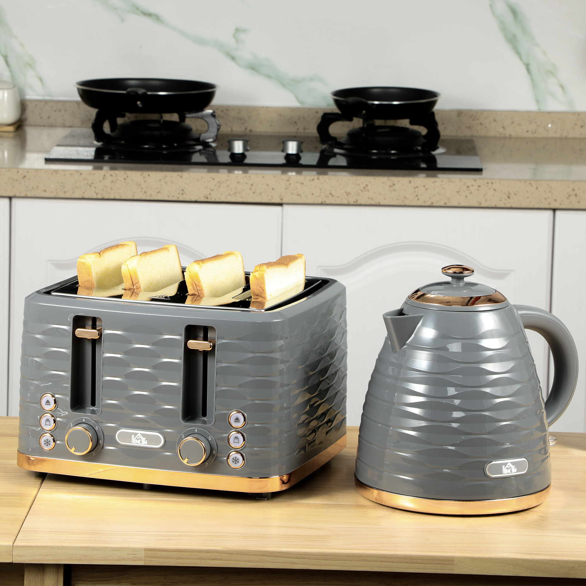 Kettle And Toaster Sets, 3000W 1.7L Rapid Boil Kettle & 4 Slice Toaster With 7 Browning Controls, Defrost, Reheat And Crumb Tray, UK Otter Thermostat, Grey