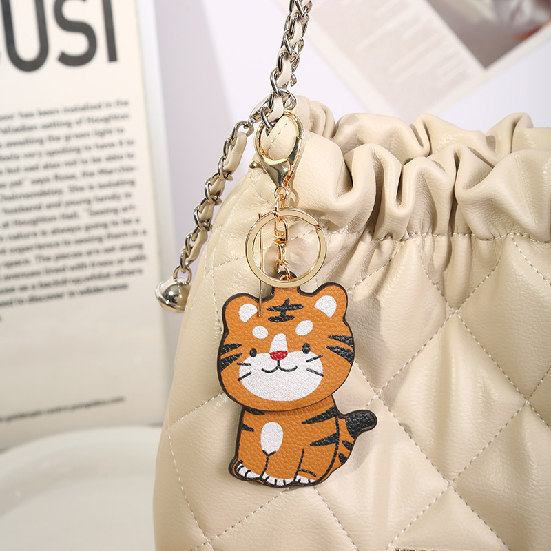 Product information: Color: white rabbit, orange rabbit, lion, Fox, Tiger, orange elk, elephant, dinosaur, Green Elk Material: Leather Style: cute style Packing list: Keychain x1 Product Image:
