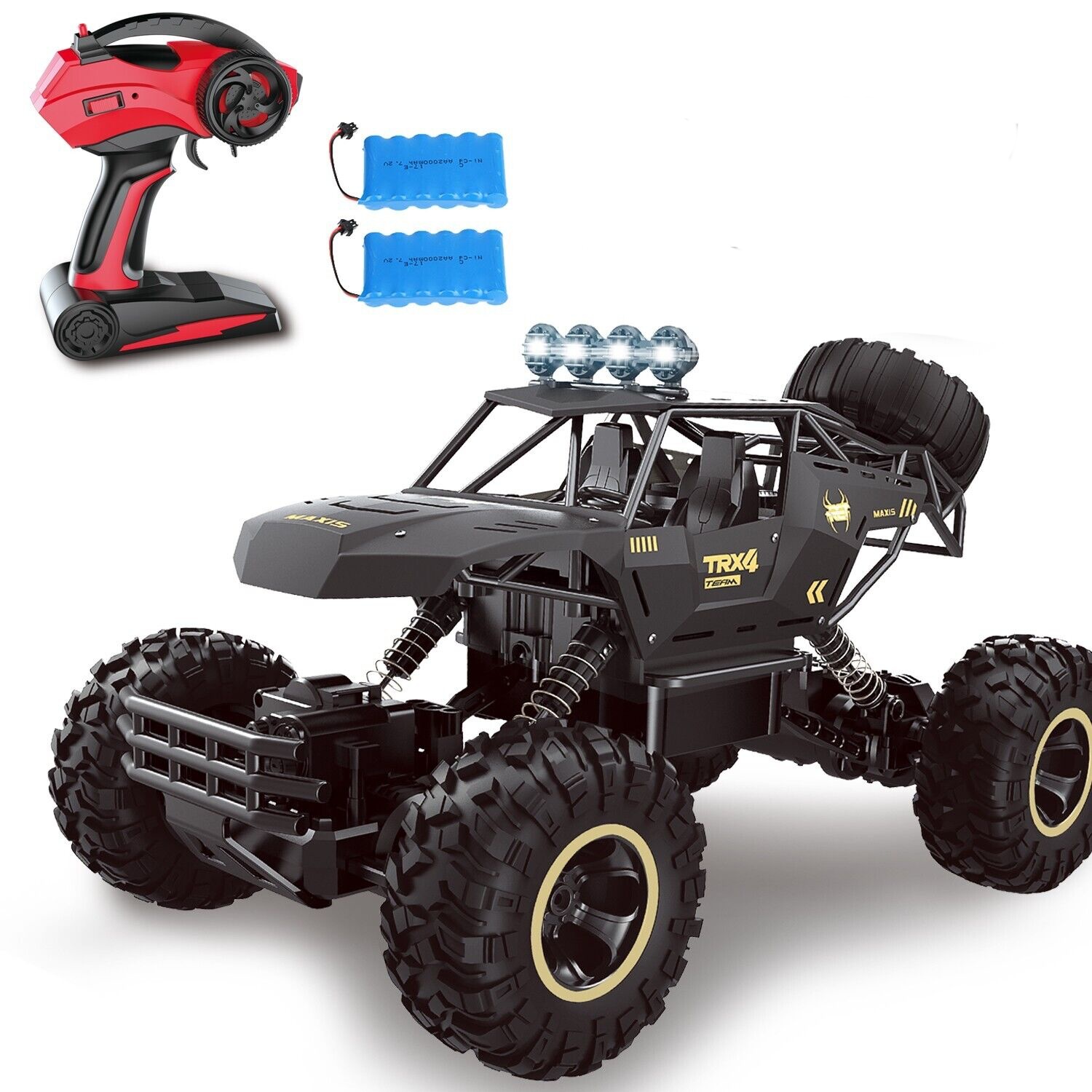- 【Safe and Fast】Large RC Monster Truck has a powerful motor and can climb 45° slopes with a speed of up to 20km/h. 4 large non-slip silicone tires make the rc crawler easy to walk on all kinds of ground, suitable for indoor and outdoor play. The anti-collision design protects the safety of remote control cars and children.