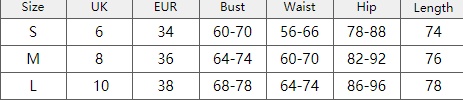 | size | UK | EUR | Bust | Waist | Hip | Length |