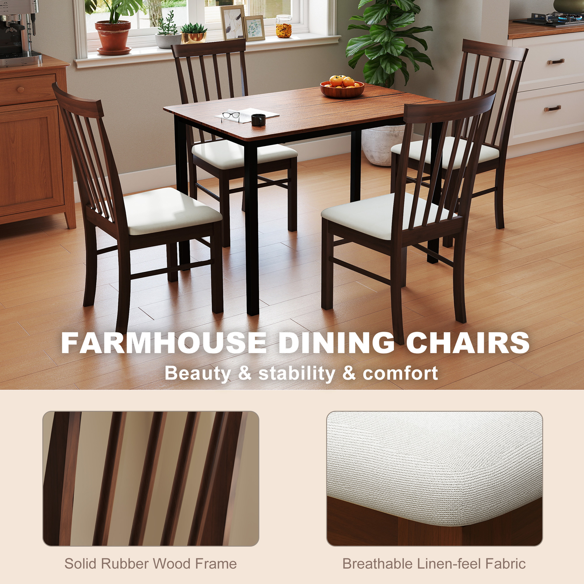 - – Materials: Rubberwood, Linen-feel Fabric (100% Polyester), Foam
